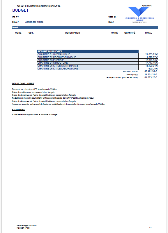 Projet: Fourniture d’une station d’épurationd’eau potable avec panneau solaire